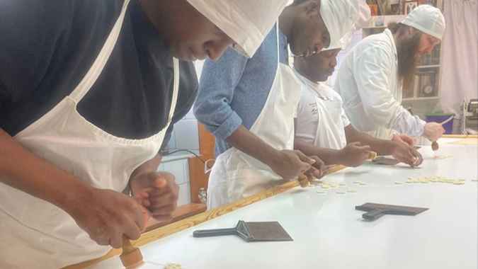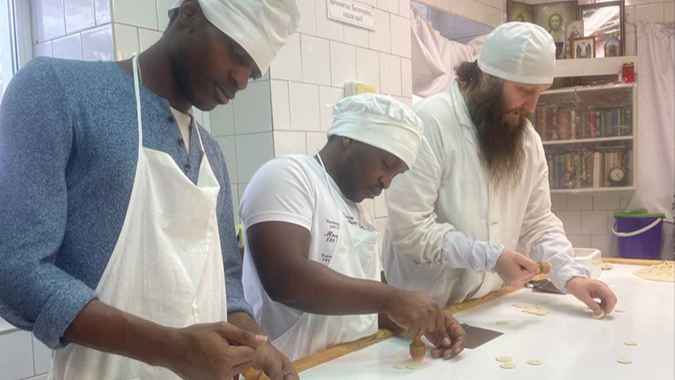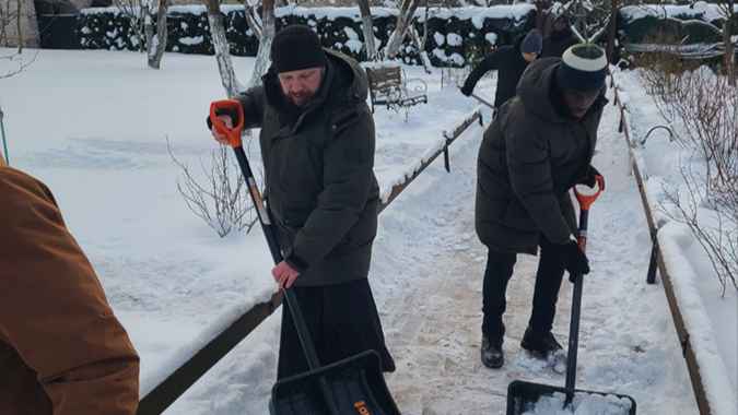 In the monastery, the children performed laborious obediences in the prosphorna, the kitchen, and also helped with the cleaning of temples. But the most memorable obedience was on the holy hill, where the guys were clearing the snow. The group of pilgrims included both international students and children from Russia.
